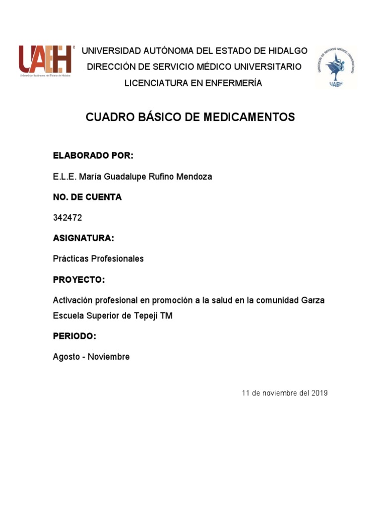 Cuadro Básico de Medicamentos en Enfermería