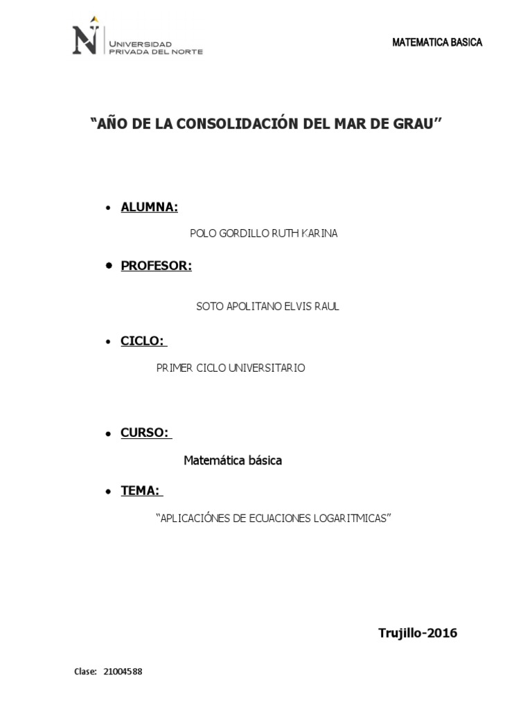 “APLICACIÓNES DE ECUACIONES LOGARITMICAS”