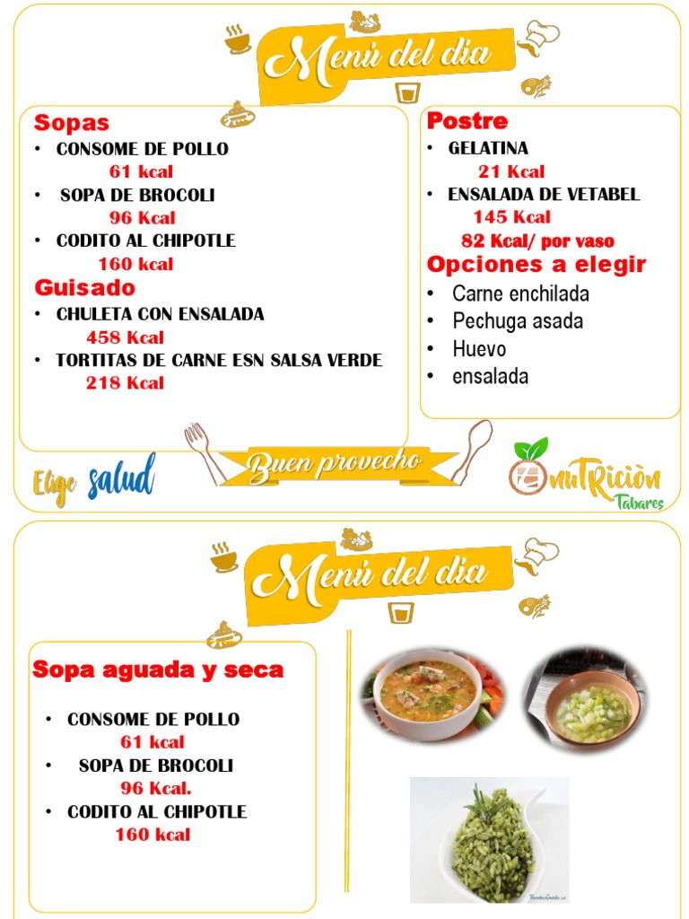 Nota: Esta es una recomendación nutricional de como elegir tus platillos para tener un peso deseable