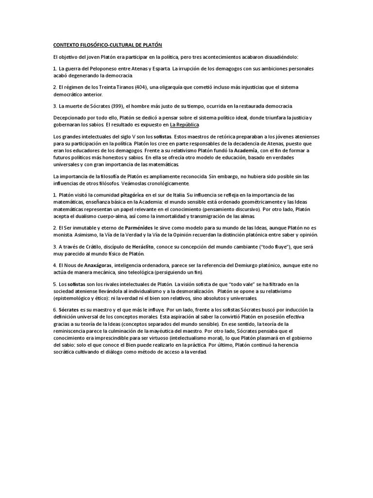 CONTEXTO FILOSÓFICO-CULTURAL DE PLATÓN