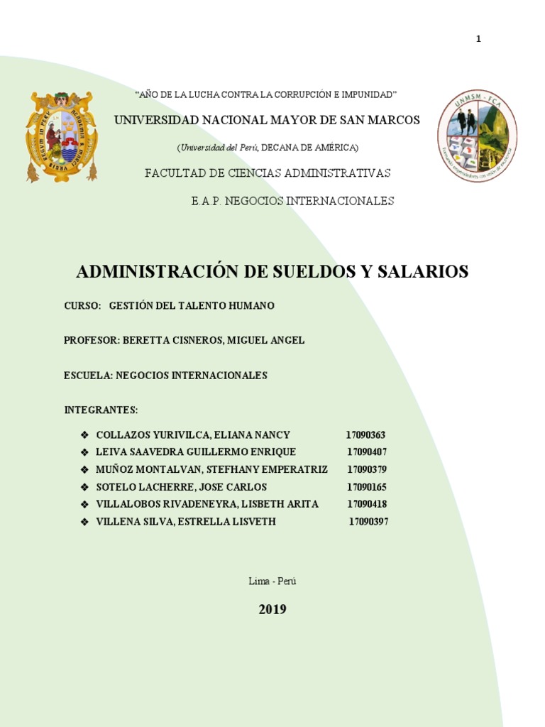 ADMINISTRACIÓN DE SUELDOS Y SALARIOS