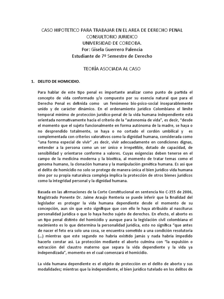 apartado que dice: -El bien jurídico que es la vida humana se concreta en la existencia