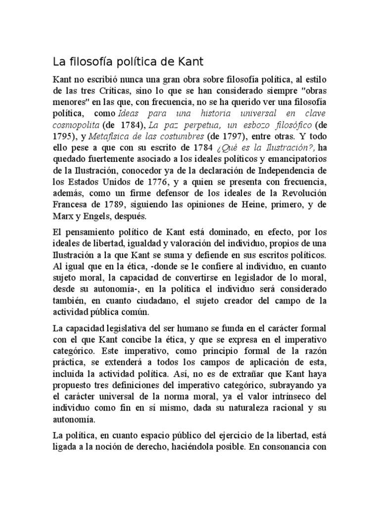Kant no escribió nunca una gran obra sobre filosofía política, al estilo
