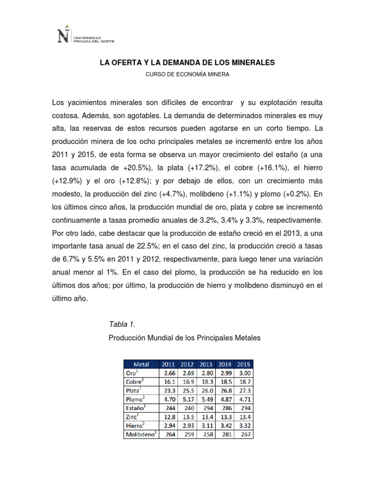 LA OFERTA Y LA DEMANDA DE LOS MINERALES