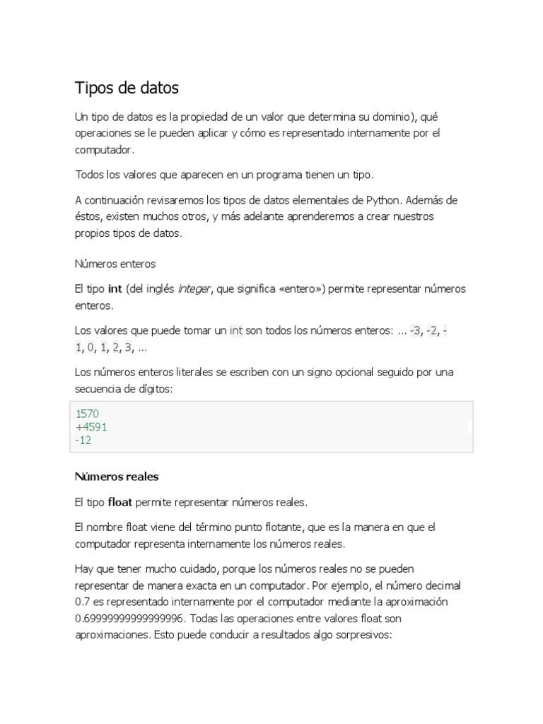 A continuación revisaremos los tipos de datos elementales de Python. Además de