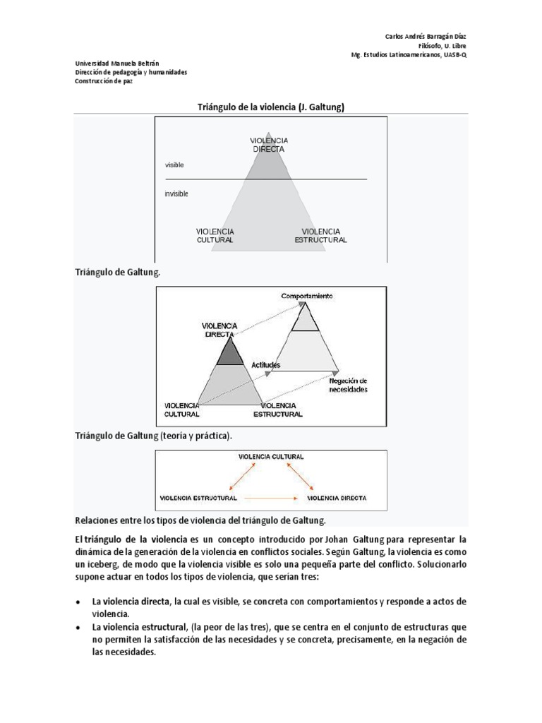 dinámica de la generación de la violencia en conflictos sociales. Según Galtung, la violencia es como