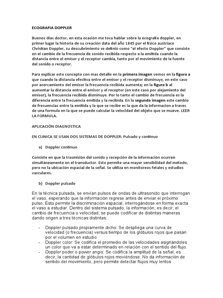 Buenos dias doctor, en esta ocasión me toca hablar sobre la ecografía doppler, en
