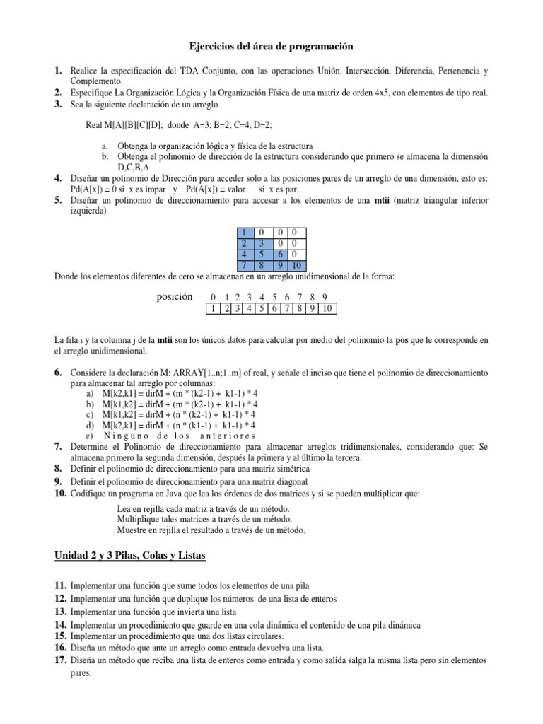 5. Diseñar un polinomio de direccionamiento para accesar a los elementos de una mtii (matriz triangular inferior