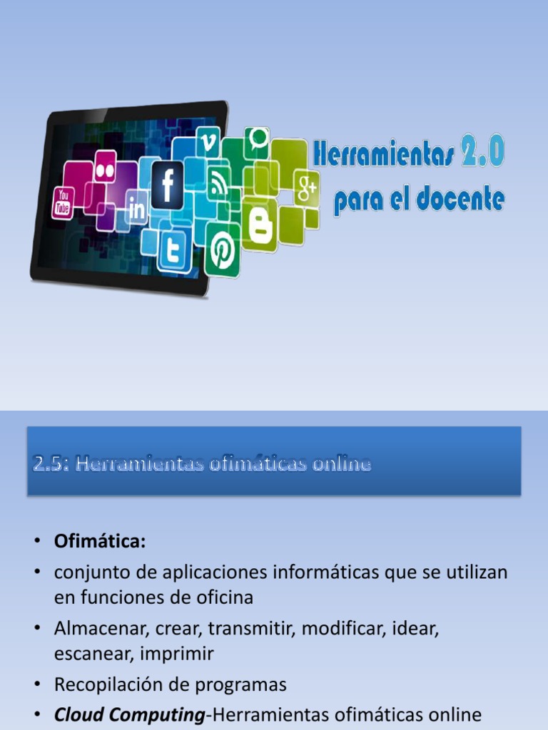 • Herramientas ofimáticas en la nube/ ofimática 2.0: