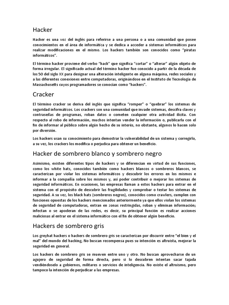 forma irregular. El significado actual del término hacker fue conocido a partir de la década de