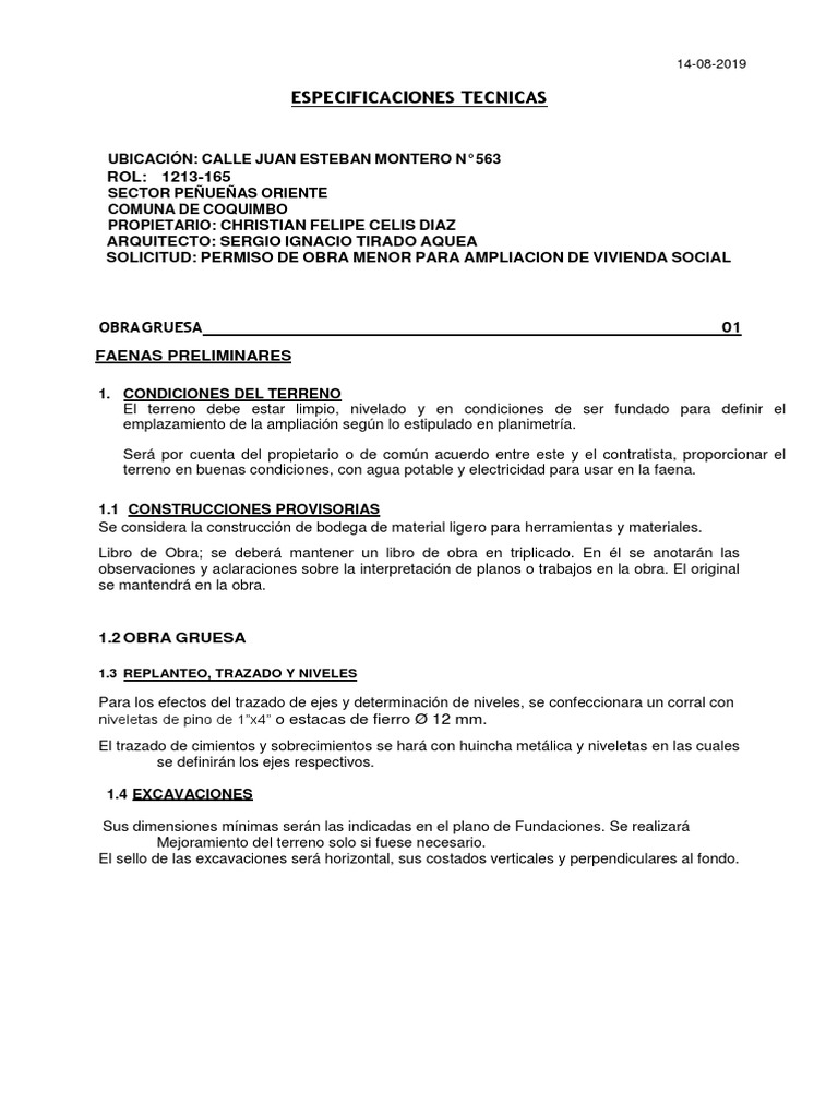 Cimientos: Se ejecutarán en estricta concordancia al proyecto de arquitectura en cuanto a