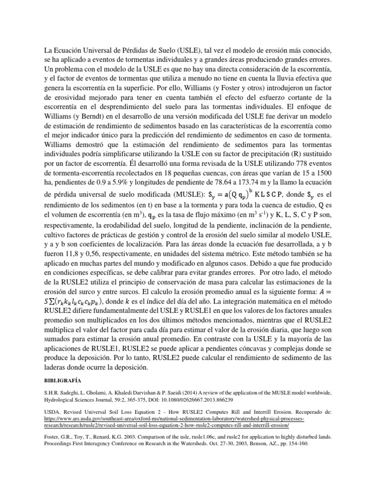 de pérdida universal de suelo modificada (MUSLE): Sy = a(Q qp ) K L S C P, donde Sy es el