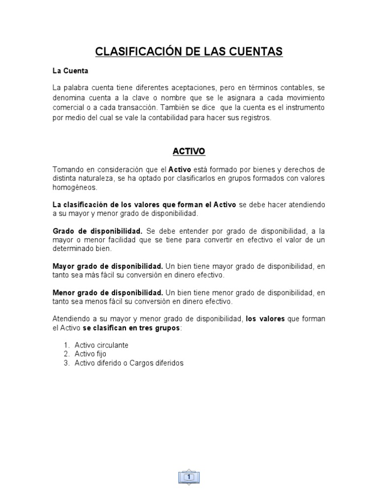 CLASIFICACIÓN DE LAS CUENTAS