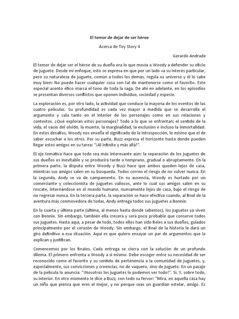 especialmente, sus convicciones y creencias, no de vaquero, sino de juguete. En un pasaje