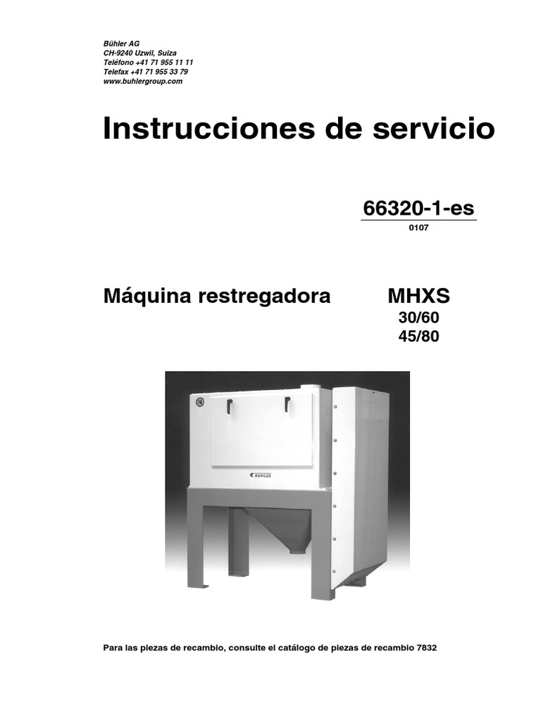 Estas instrucciones de servicio documentan la máquina restregadora MHXS.
