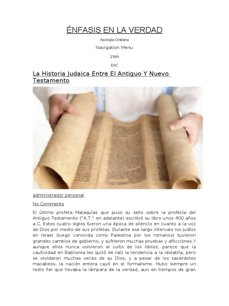 La Historia Judaica Entre El Antiguo Y Nuevo