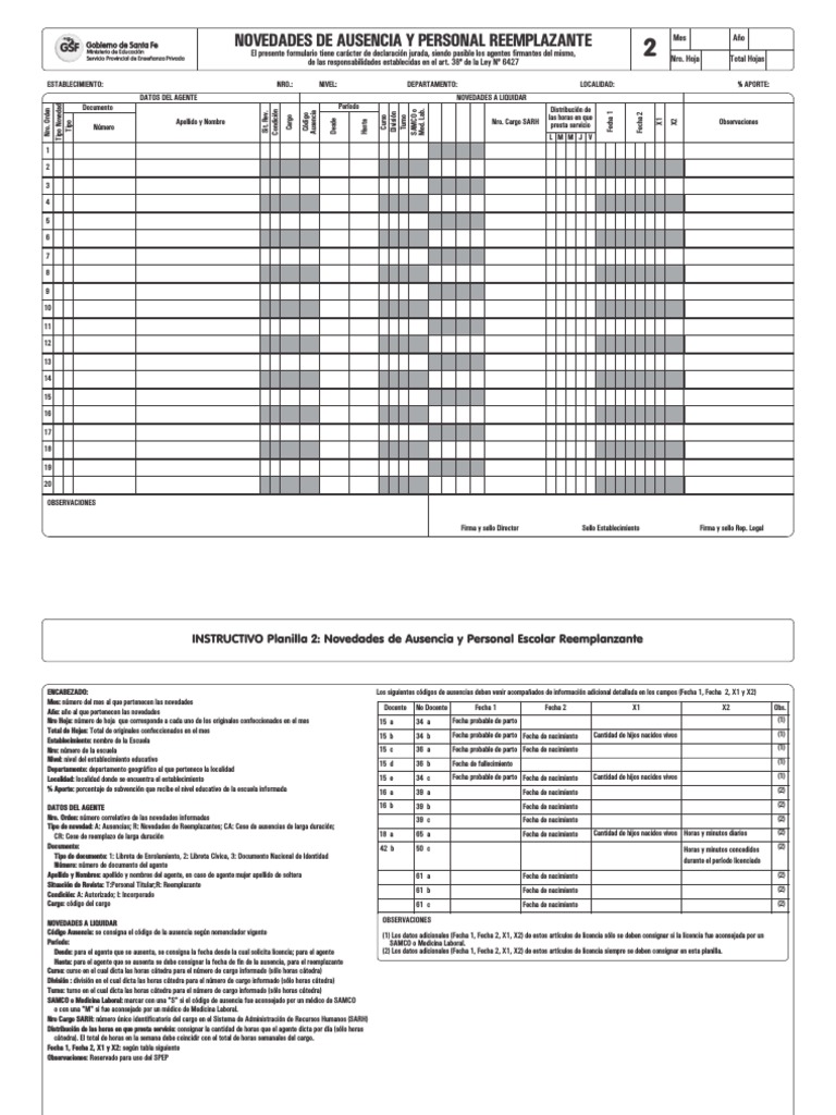 INSTRUCTIVO Planilla 2: Novedades de Ausencia y Personal Escolar Reemplanzante