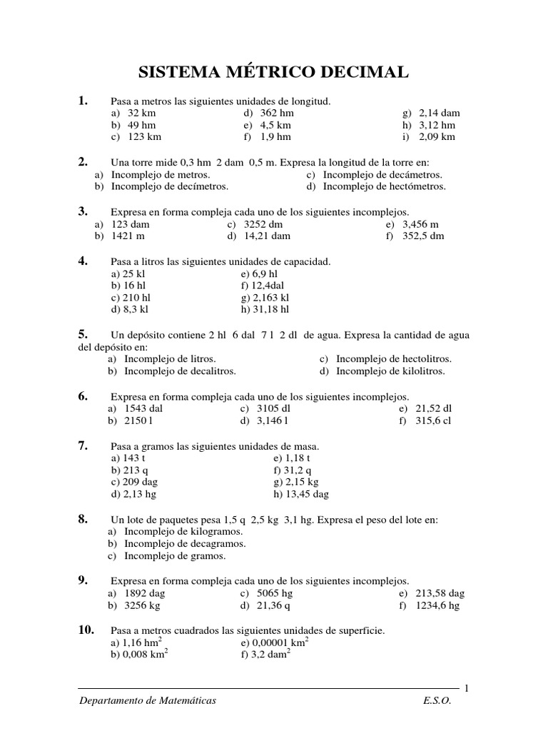 5. Un depósito contiene 2 hl 6 dal 7 l 2 dl de agua. Expresa la cantidad de agua