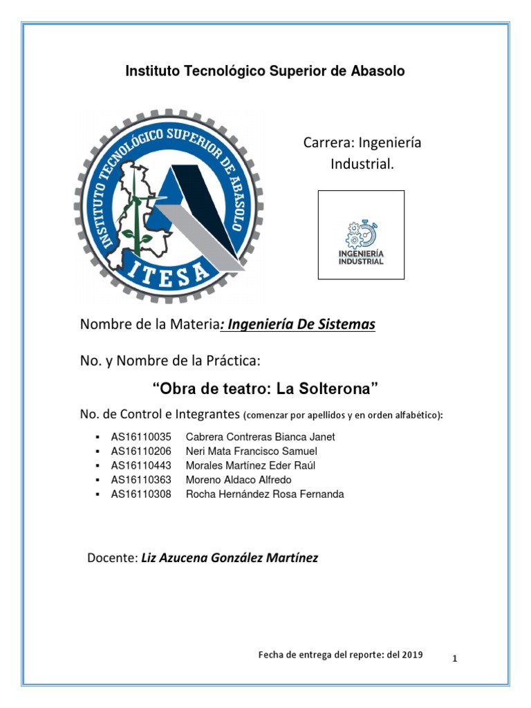 No. de Control e Integrantes (comenzar por apellidos y en orden alfabético):