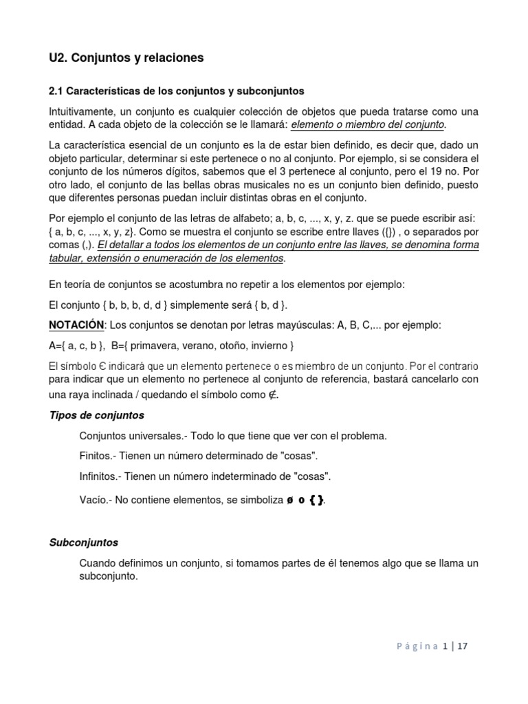 2.1 Características de los conjuntos y subconjuntos