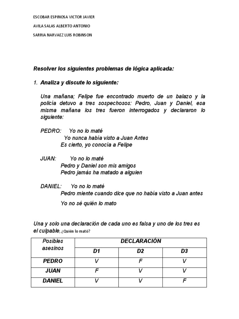 Una y solo una declaración de cada uno es falsa y uno de los tres es