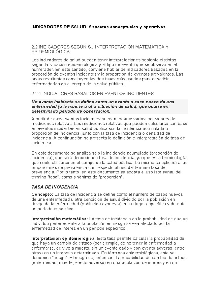 incidencia. A continuación se presenta la definición e interpretación de tasa de
