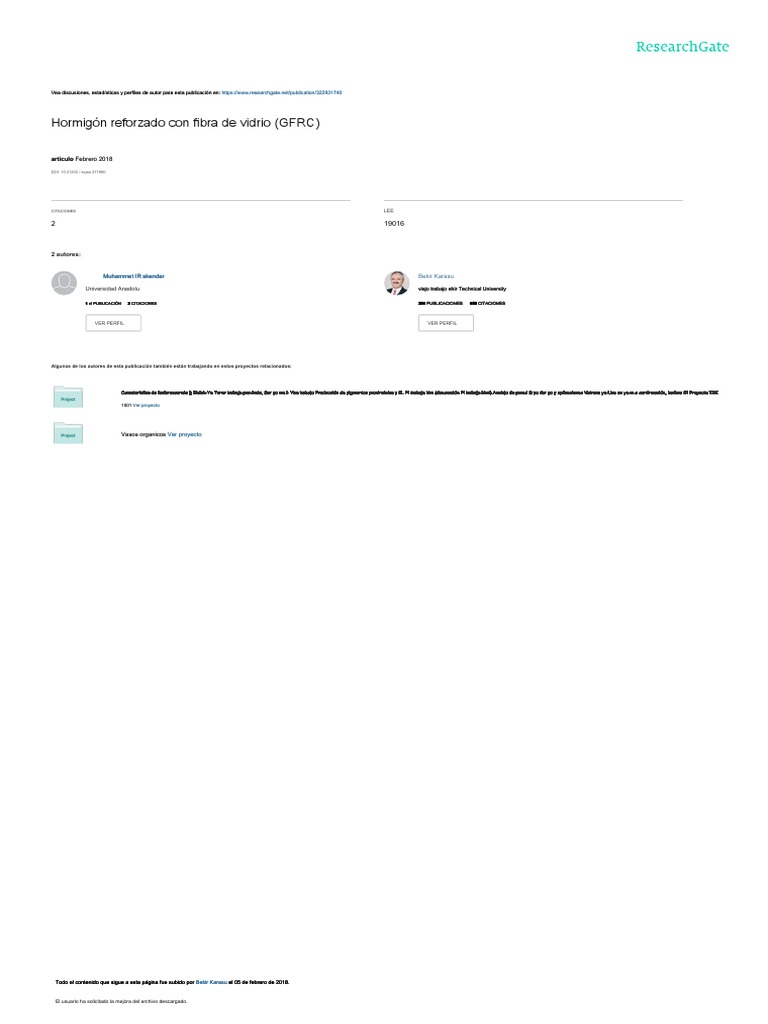Comportamiento por fractura del cemento reforzado con fibra de vidrio ”, Construcción y materiales de construcción 136, 2017,