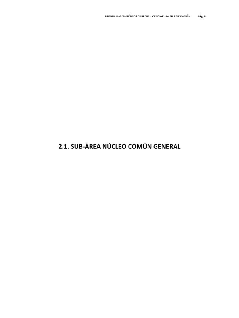 PROGRAMAS SINTÉTICOS CARRERA LICENCIATURA EN EDIFICACIÓN Pág. 21