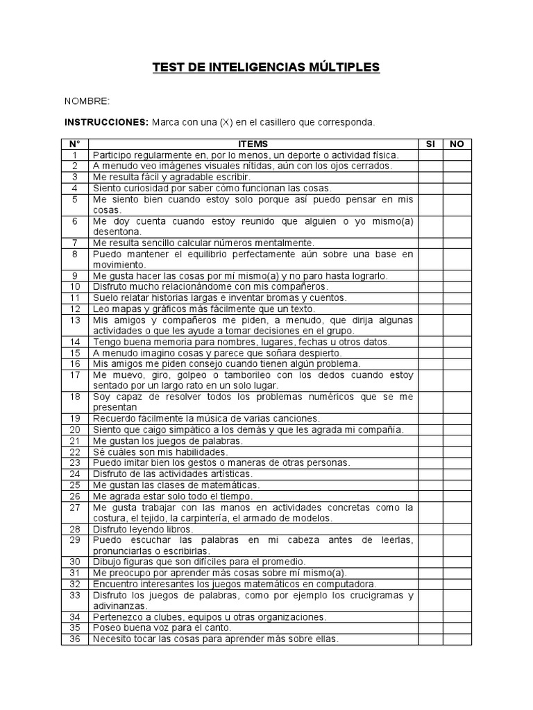 TEST DE INTELIGENCIAS MÚLTIPLES
