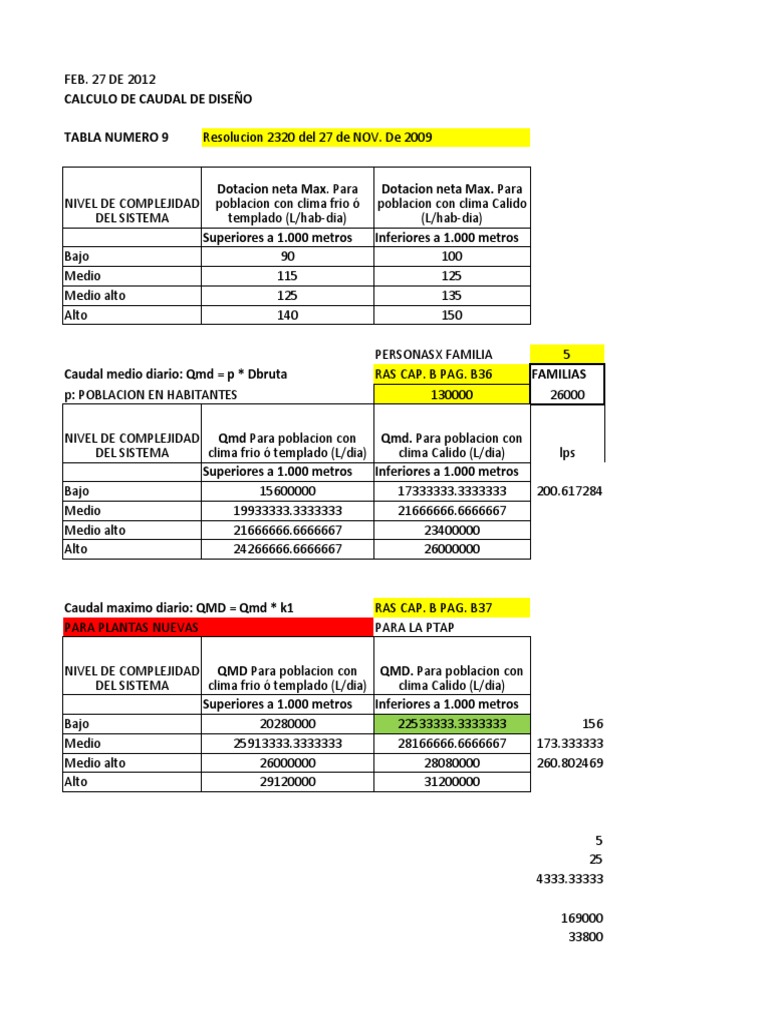 Caudal medio diario: Qmd = p * Dbruta RAS CAP. B PAG. B36 FAMILIAS