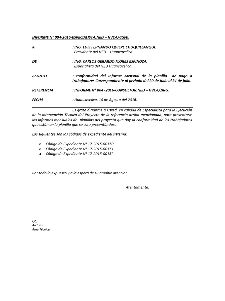 INFORME N° 004-2016-ESPECIALISTA.NED – HVCA/CGFE.