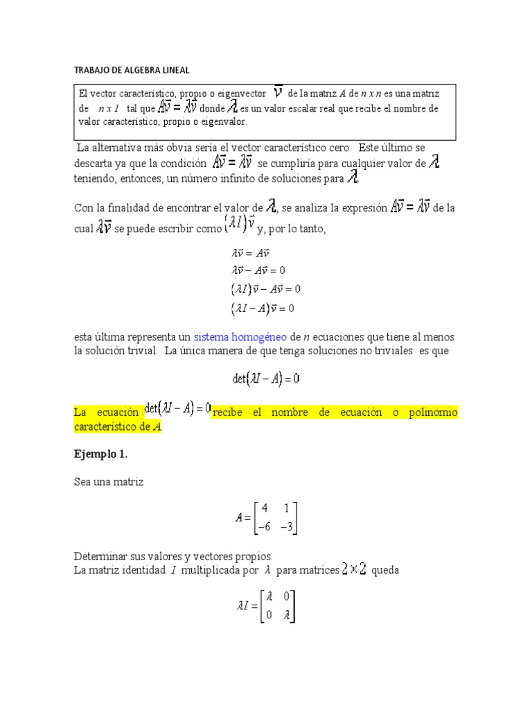 característicos correspondientes a λi , al resolver el sistema homogéneo ( I A) λi − x=[Link] llevar a