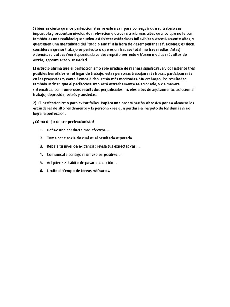 2). El perfeccionismo para evitar fallos: implica una preocupación obsesiva por no alcanzar los