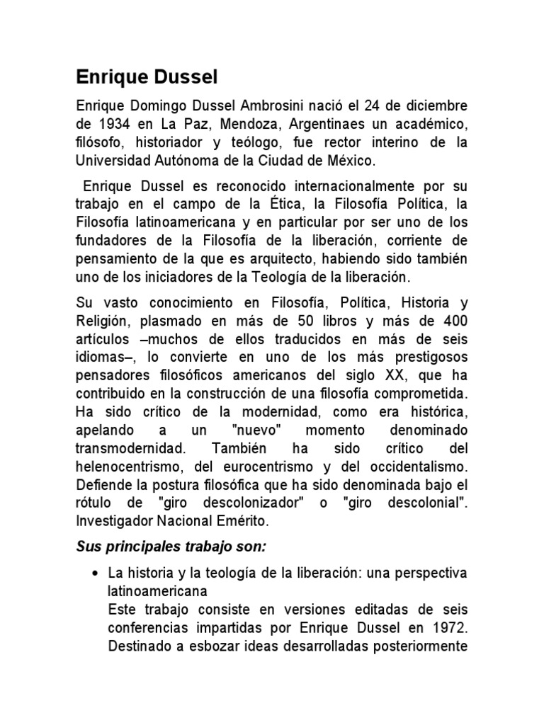 Enrique Dussel es uno de los principales exponentes de