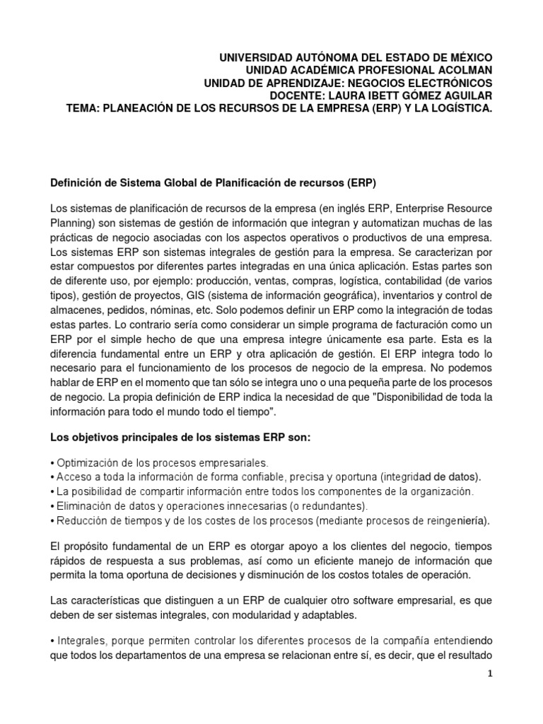 Planning) son sistemas de gestión de información que integran y automatizan muchas de las
