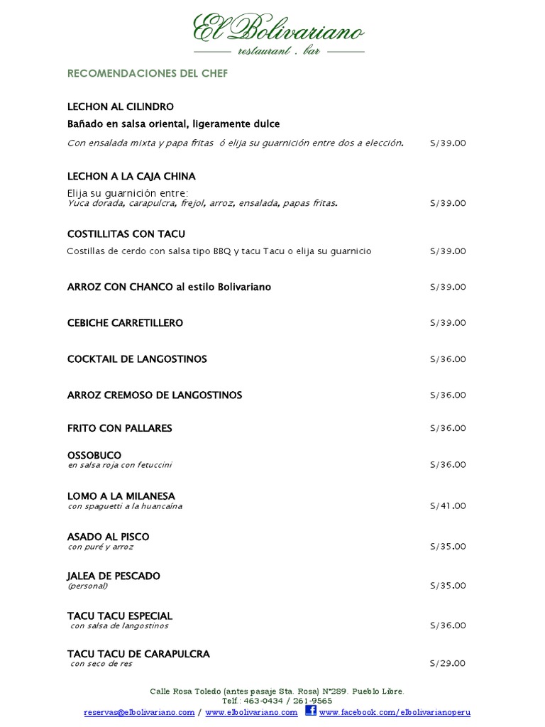 reservas@[Link] / [Link] [Link]/elbolivarianoperu