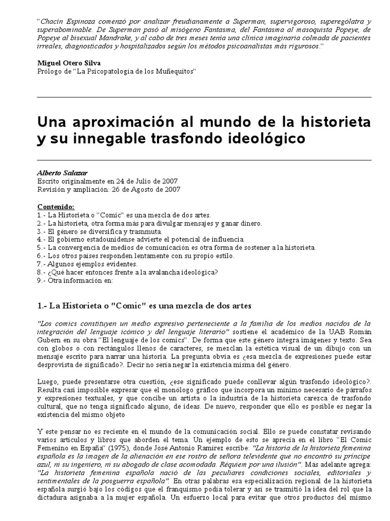 varios artículos y libros que aborden el tema. Un ejemplo de esto se aprecia en el libro "El Comic