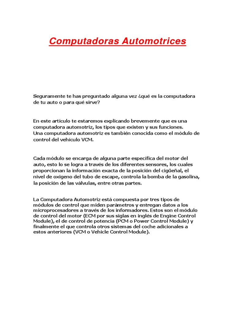 descripción en Ingles Engine Control Unit). Es el componente principal