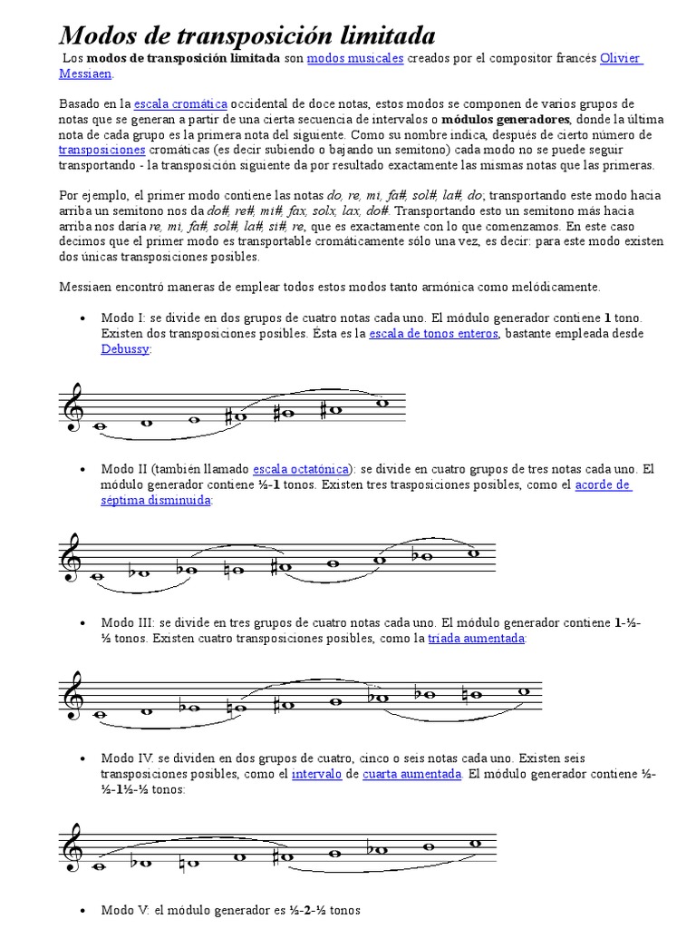 Y este es el listado de los modos de transposición limitada usados por Messiaen.