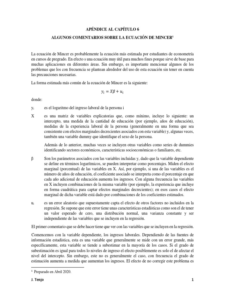 el modelo de Mincer. Esta es una herramienta muy valiosa para el análisis empírico. Es simplemente