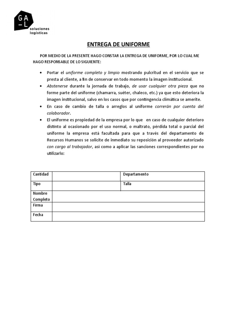 El uniforme es propiedad de la empresa por lo que en caso de cualquier deterioro