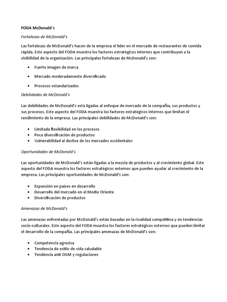 visibilidad de la organización. Las principales fortalezas de McDonald’s son: