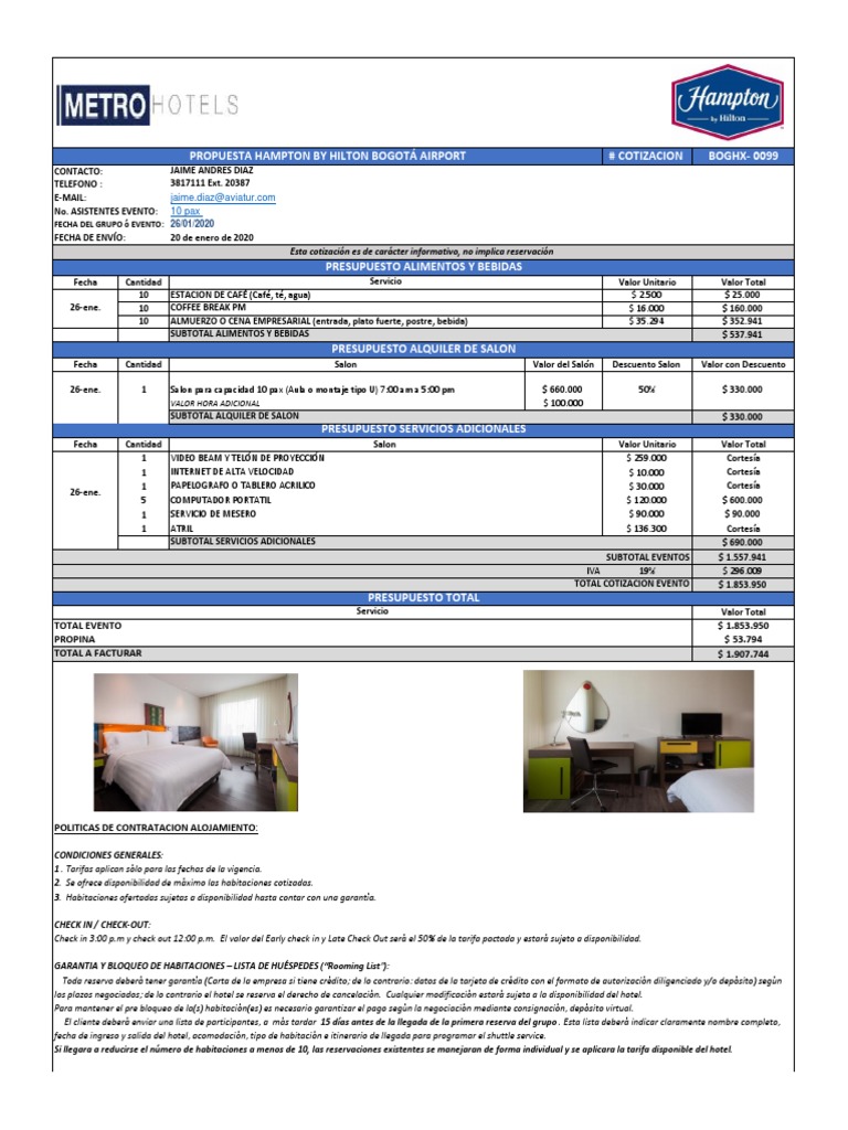 PROPUESTA HAMPTON BY HILTON BOGOTÁ AIRPORT # COTIZACION BOGHX- 0099