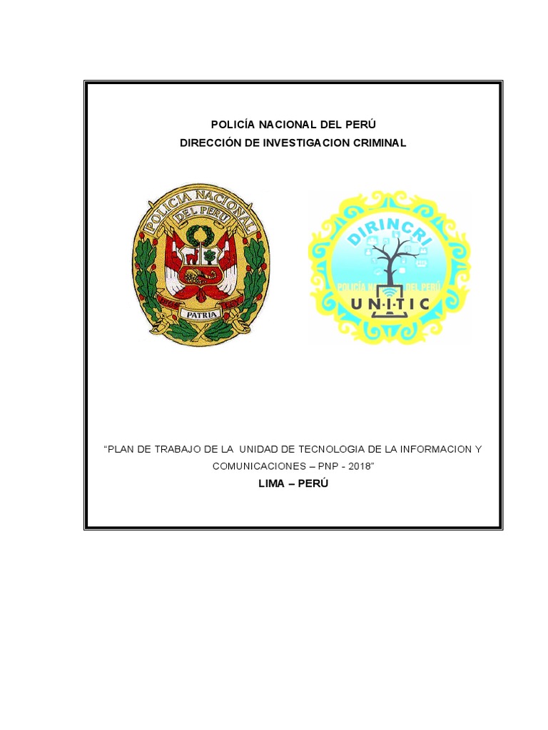 PLAN DE TRABAJO N°001 -2018-DIRINCRI-PNP/UNITIC