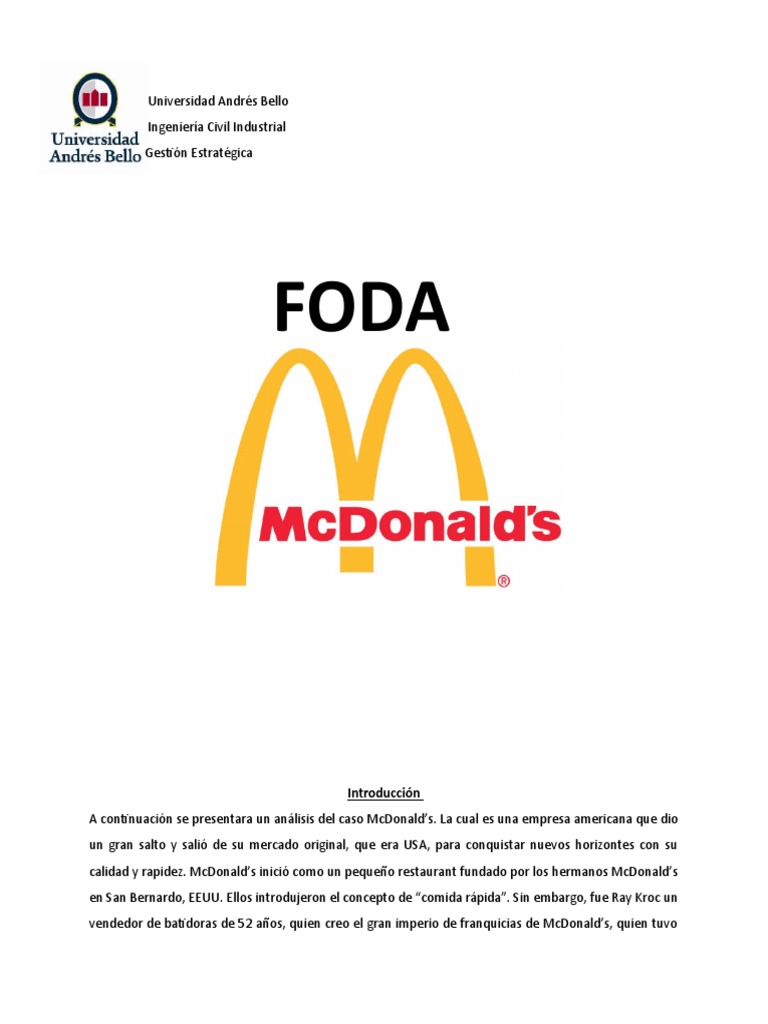 A continuación se presentara un análisis del caso McDonald’s. La cual es una empresa americana que dio