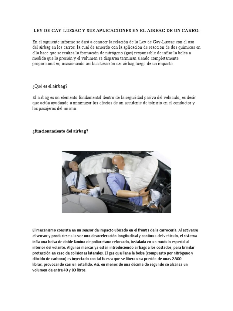 LEY DE GAY-LUSSAC Y SUS APLICACIONES EN EL AIRBAG DE UN CARRO.
