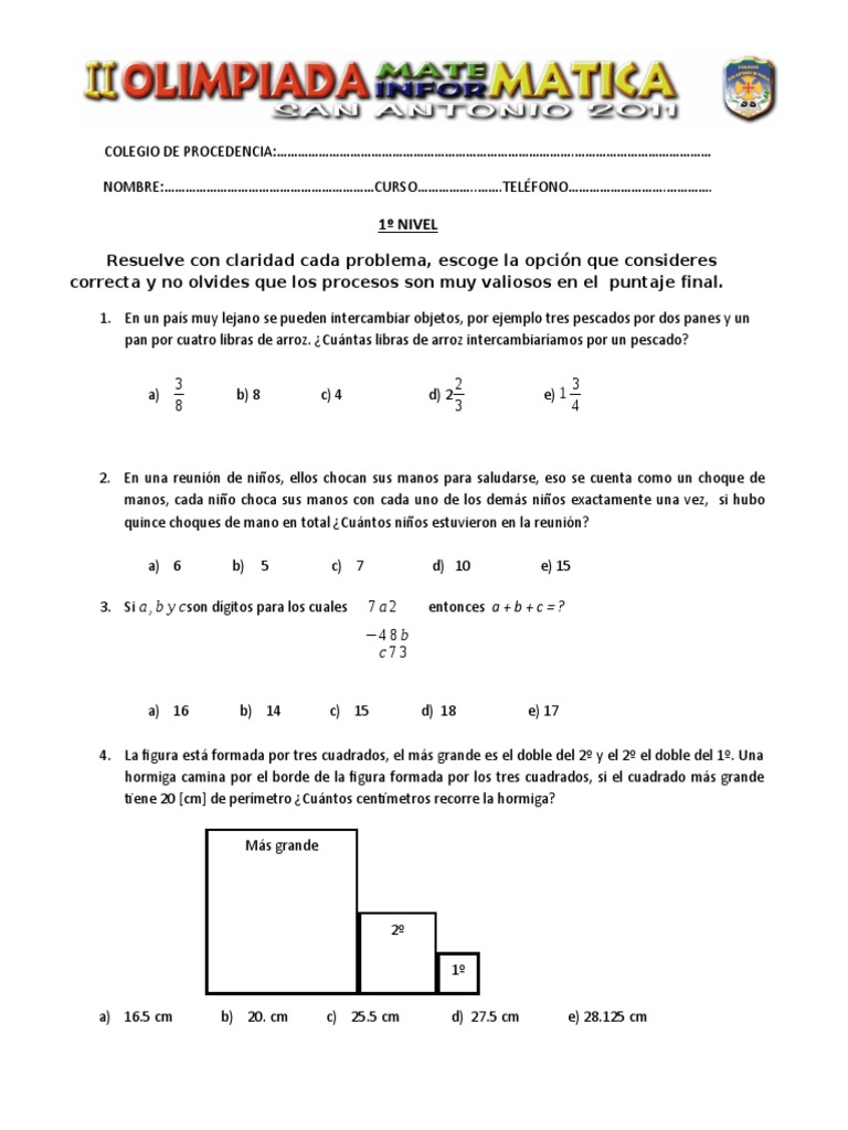 Resuelve con claridad cada problema, escoge la opción que consideres