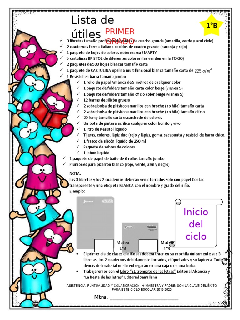 El primer día de clases el niño (a) deberá traer en su mochila únicamente sus 3