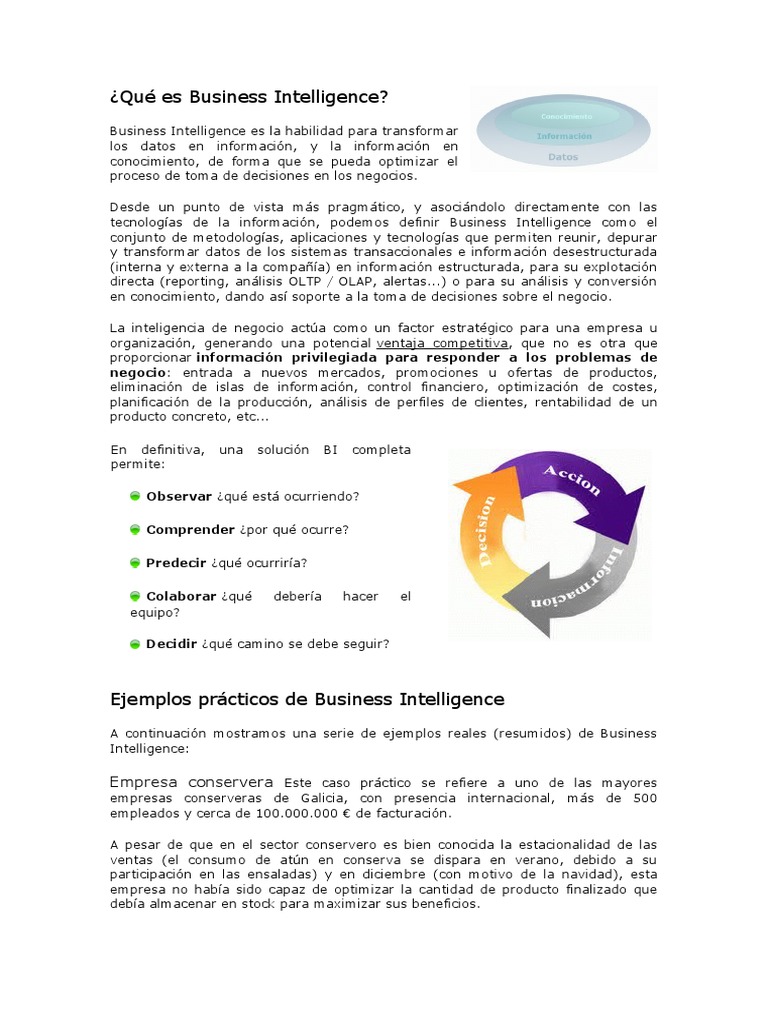 A continuación mostramos una serie de ejemplos reales (resumidos) de Business