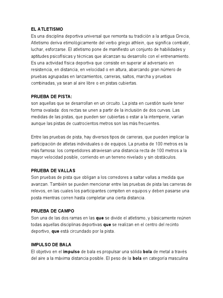 campo y pista, es practicado por mujeres y hombres. Cada competidor tiene